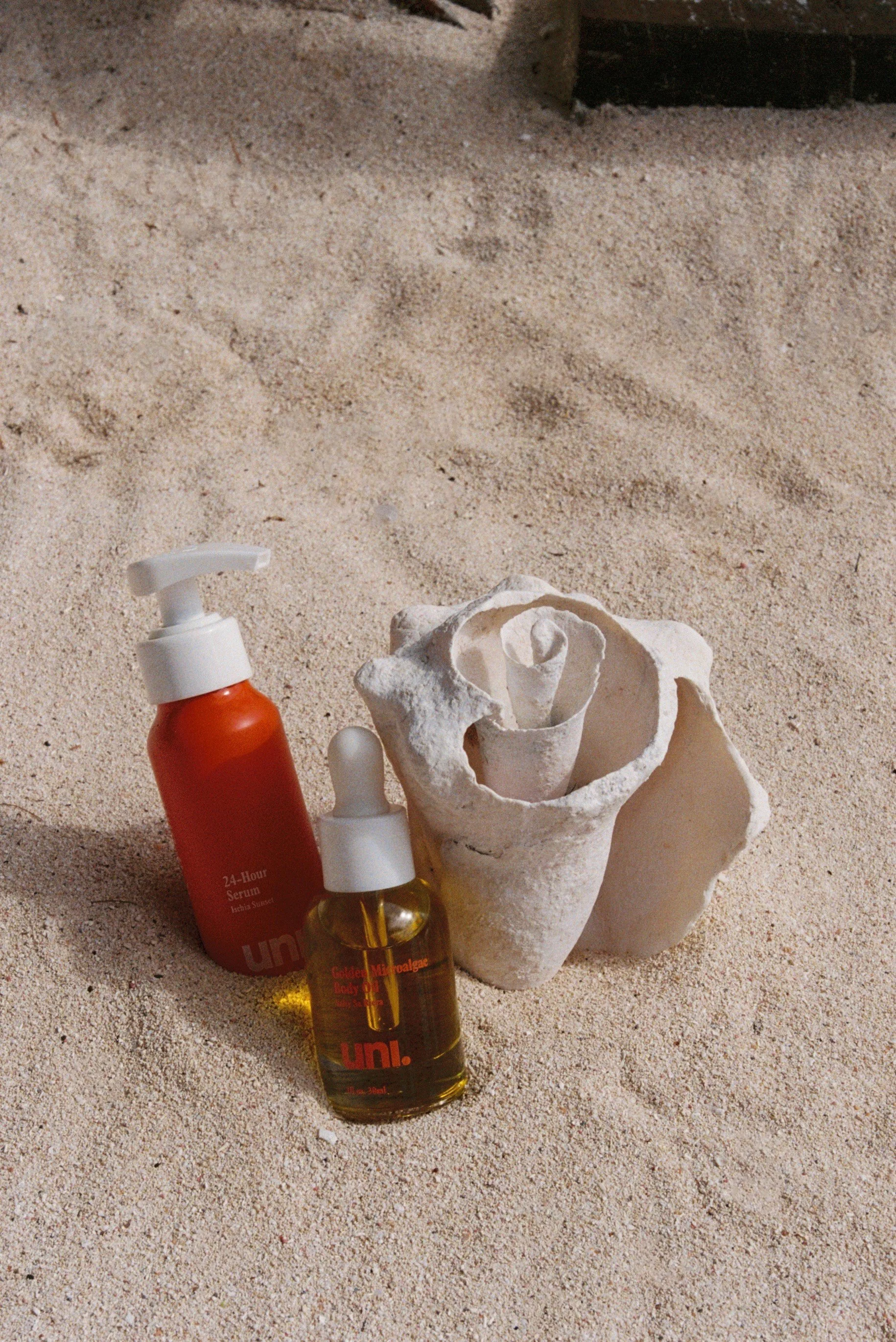 I shot their products on iPhone and film at the beach — a setting that perfectly reflected Uni’s ocean-inspired vision and clean, minimal aesthetic. The natural light, sand, and sea captured exactly what the brand stands for: effortless beauty that gives back to the planet.